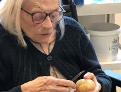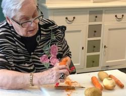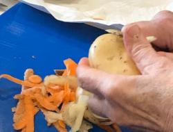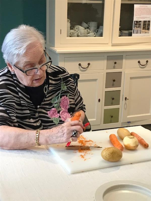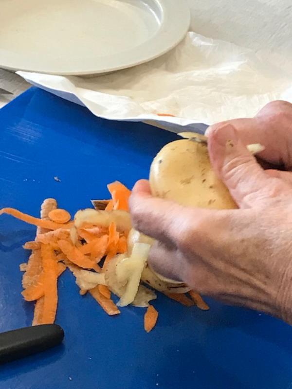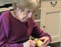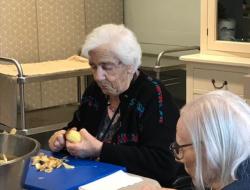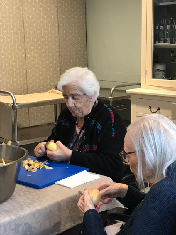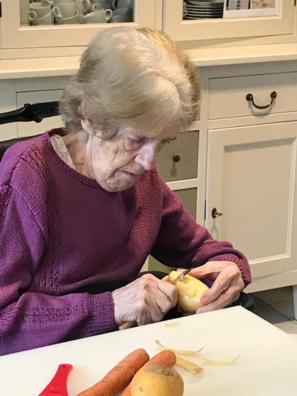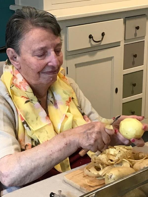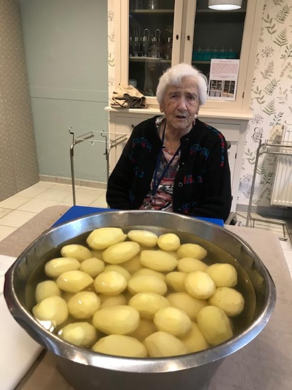 Comme chaque vendredi, le cercle des amateurs d'épluchures de patates de la résidence La Fontaine Médicis s'est réuni pour relever le défi préparé par la cuisinière : 5kg de pommes de terre à éplucher pour la soupe du soir! Et l'occasion de retrouver les gestes d'antan (c'est comme la bicyclette, cela ne s'oublie pas), de parler des grandes tablées d'autrefois où la soupière trônait tous les soirs au centre de la table...