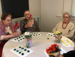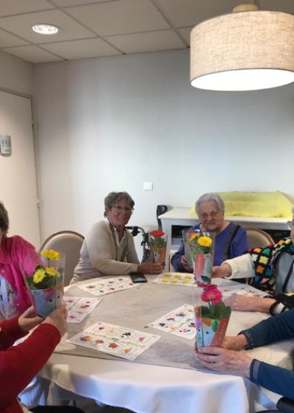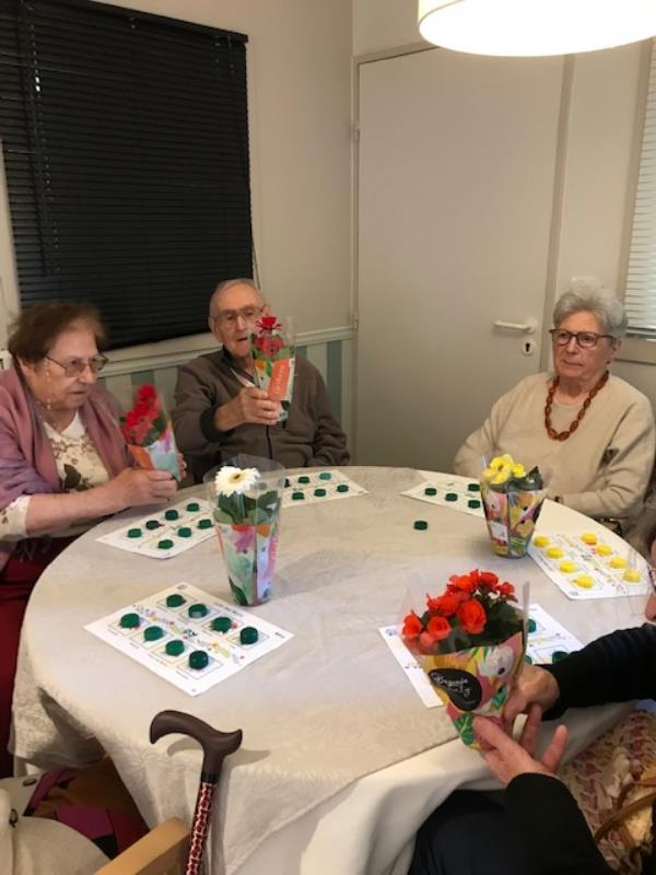 Un joli loto sur le thème des fleurs ce jeudi pour changer du loto quine traditionnel : bégonias et gerberas sont les lots convoités par les 22 joueurs présents. Rouges vifs, jaunes éclatants ou blancs lumineux, des couleurs à ramener dans sa chambre pour y faire entrer le printemps. Une de nos résidentes porte d'ailleurs le joli prénom d'Iris! L'ambiance est survoltée mais nous en profitons quand même pour découvrir les origines lointaines des fleurs de nos jardins, ramenées en Europe par des botanistes passionnés.